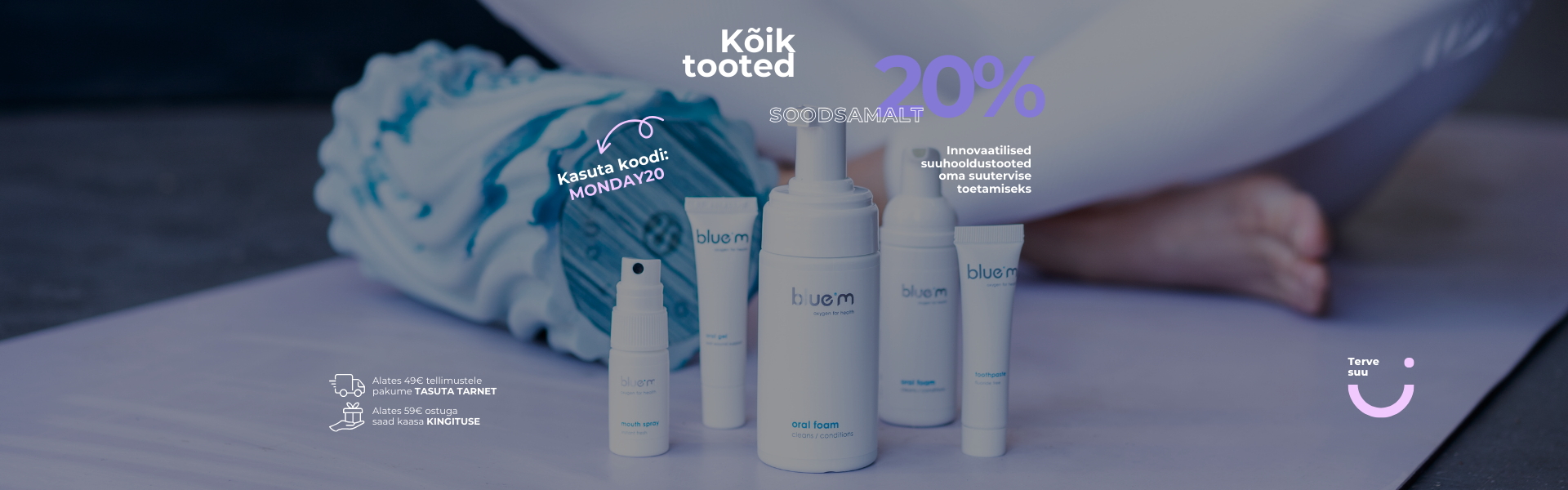 Suutervis on aluseks meie üldisele tervisele ning seetõttu meie elu kvaliteedi ja kvantiteedi seisukohast ülioluline. blue®m pakub täielikku valikut auhinnatud suuhooldustooteid, mis hoiavad ja taastavad sinu suutervist. Alates igapäevase suuhoolduse toodetest probleemse suu ja implantaadi hoolduseni välja.