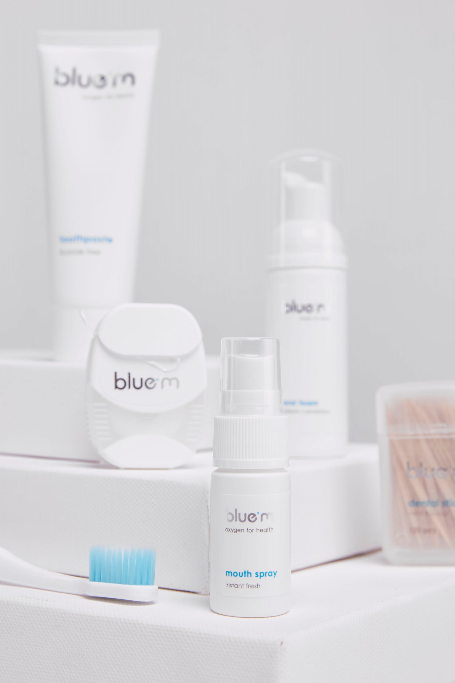 The blue®m premium dental floss tape, is a wide, flat and waxed floss for the best cleaning between teeth and molars. Removes bacterial plaque, food particles and leaves a fresh minty taste.
