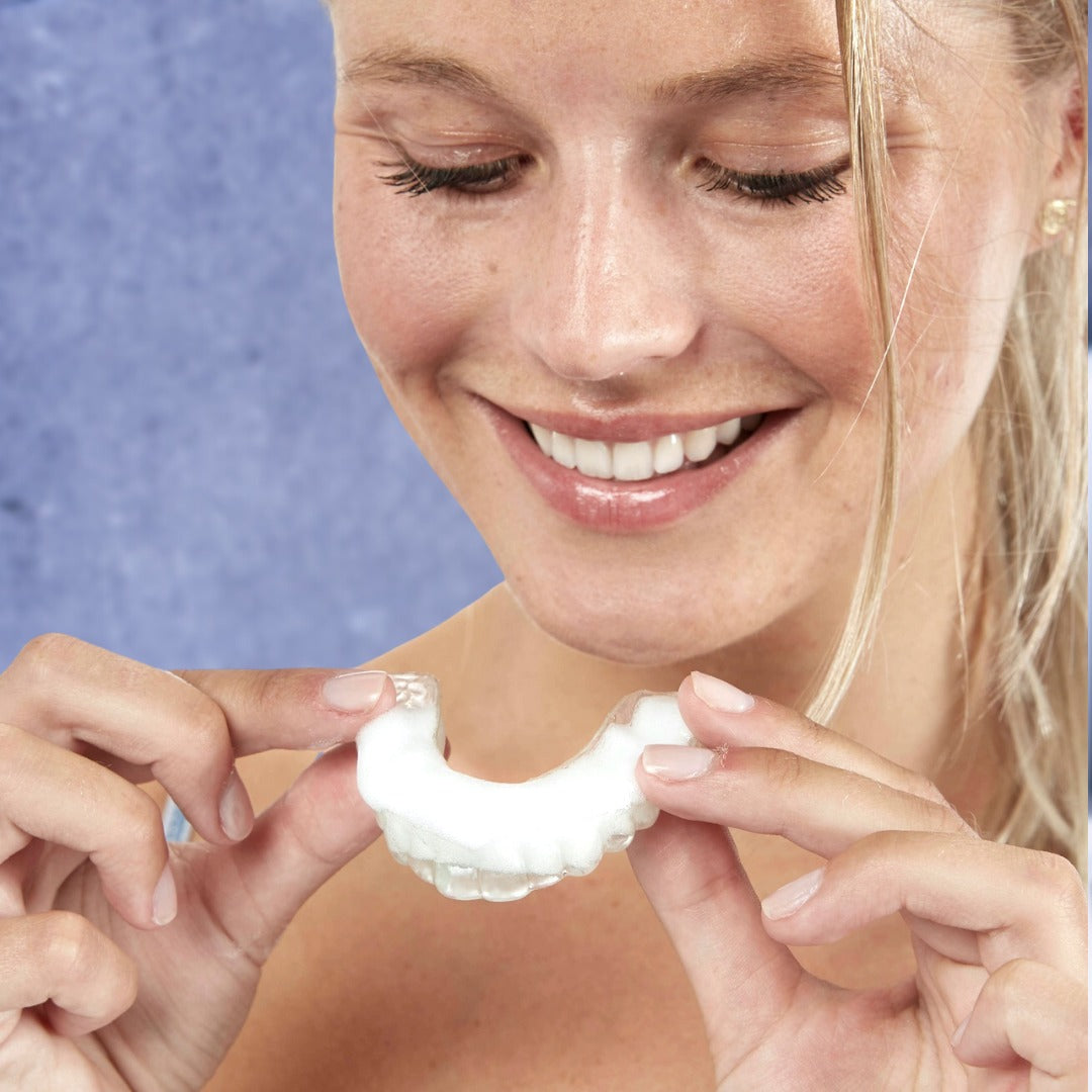 Apply oral foam directly to the aligner, braces or dentures. Make sure it is evenly distributed so that all parts are well covered. Place the aligner, or other removable appliance, with the foam in it back in the mouth and spit out any excess foam. In case of heavy stains, let the oral foam soak in for 5 minutes first and then brush the aligner clean with a soft toothbrush.